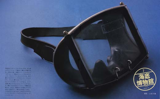耳抜きがうまくいくかいかないかは、今も昔もダイバーにとって素朴かつ重大な命題である。20年ほど前、当時のコマーシャルダイバーのヘルメット潜水のイメージで作られたネムロード社(スペイン)のこのマスクは、指で鼻をつまめるスペースがなかった。そのかわりに、マスクに鼻つまみリモートコントロールレバー(?)がついていたのである。マスクを顔におしつけるようにしてレバーをつまむと、鼻がつままれるといういたって簡単な仕掛けだ、その上、前面ガラスは強化ガラスではない為だろう、厚さが10mm近くもある。こんなマスクに比べると、今のマスクはなんとコンパクトでシンプルでカラフルになったことだろうか・・・・・。 |