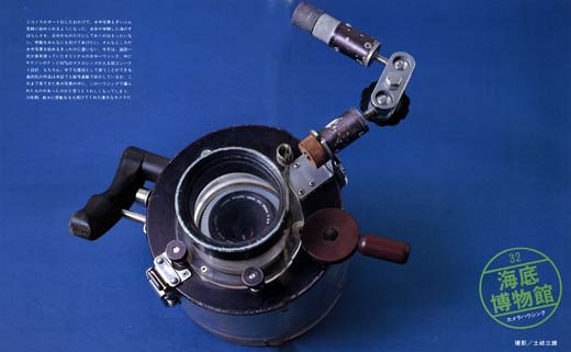 ニコノスがオート化したおかげで、水中写真もずいぶん気軽に始められるようになった。自分が体験した海のすばらしさを、自分のものだけにしておくのはもったいない、感動をみんなにも分けてあげたい、そんあところが水中写真を始めるきっかけに違いない。今月は益田一氏が長年使っていたオリジナルの水中ハウジング。中にはキャノンのF1と50mmのマクロレンズが入る超コンパクト設計。もちろん、今でも現役として使うことができる。益田氏の作品は本誌でも毎号連載で紹介しているが、これまで見てきた魚の写真の中に、このハウジングで撮られたものがあったのかと思うとうれしくなってします。10年間、我々に感動を与え続けてくれた偉大なカメラだ。。 |
