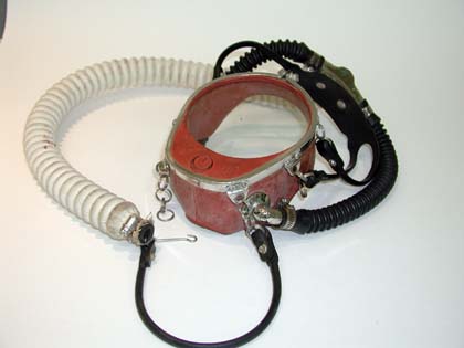 そのため、港湾工事現場や民間漁業で多く使用されるようになった。写真はアサリ式では無いが同じ方式を用いたマスク式潜水器である。