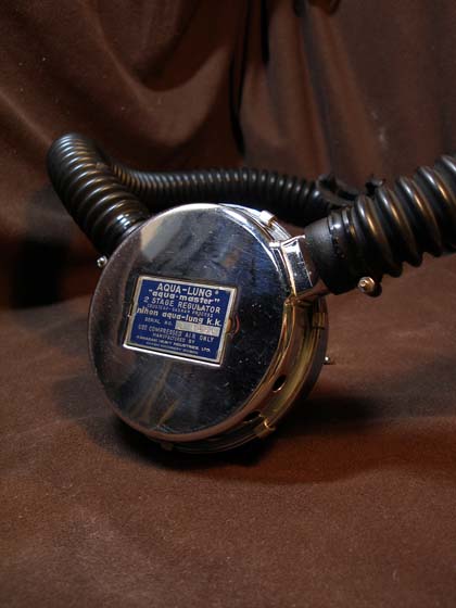 LTD. AKASHI MACHINERY DIVISION」と記載がある。1961年に設立された日本アクララング(株)はU.S.Diversよりレギュレターの図面を借受て日本でのaqua-masterダブルホースレギュレターの製造を開始した。当時の販売定価は28,800円、'67年の大学卒平均初任給は26,150円と言うのだから驚く,しかし当時のダイバーは給料叩いて買ったものだ。当時は高価な買い物だったが40年経った今も十分使える、そう考えてみると価値ある買い物なのかもしれない。